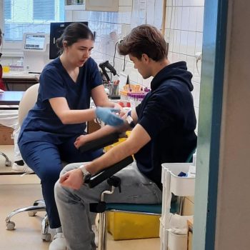 Darcovia krvi z 1. súkromného gymnázia spravidla dvakrát ročne spoločne darujú krv v NTSSR Ružinov. Týmto mladým a odvážnym ľuďom záleží na druhých a sú ochotní im nezištne pomáhať. Niektorí z nich si dnes po prvýkrát odvážne vyhrnuli rukáv a darovali krv. Na našich pravidelných ako aj občasných darcov krvi z kruhov študentov i pedagógov sme veľmi hrdí.
