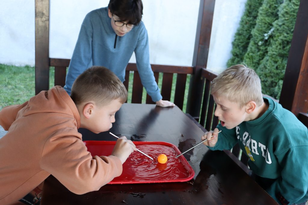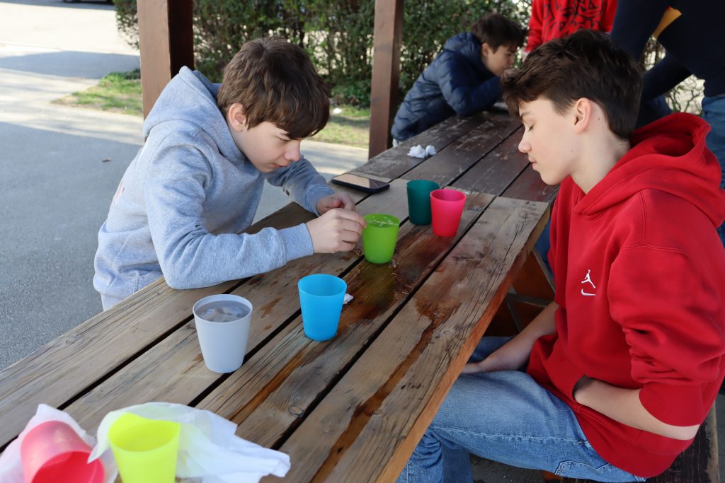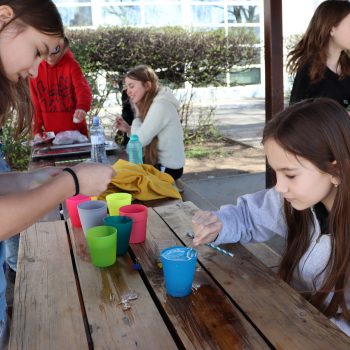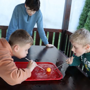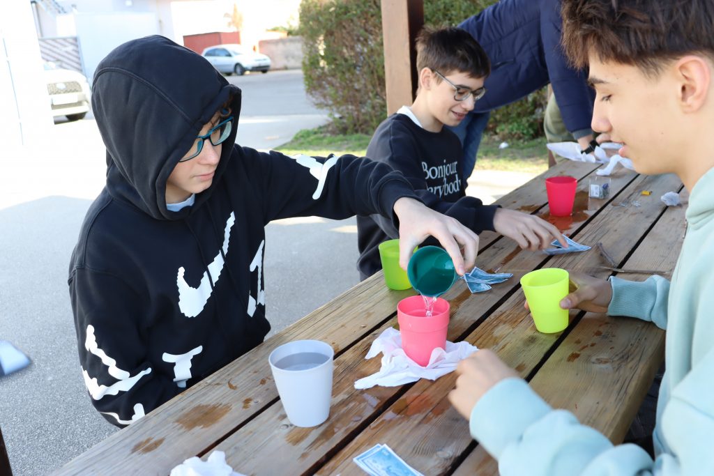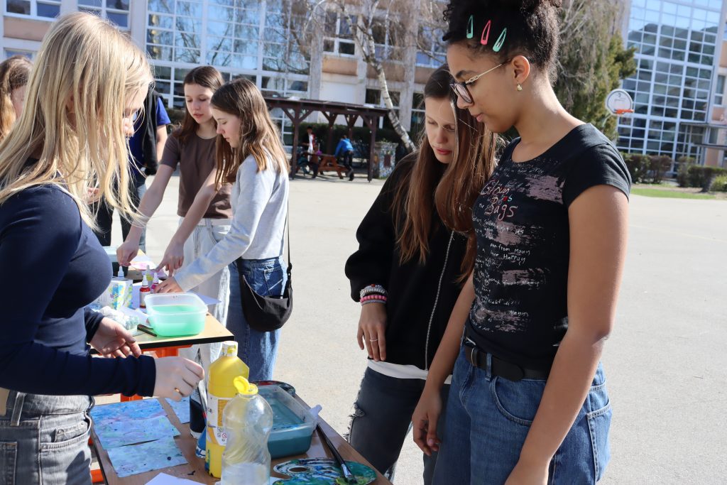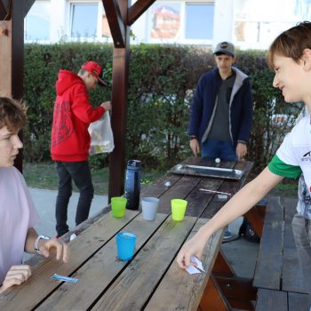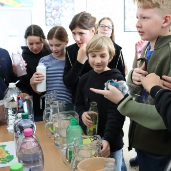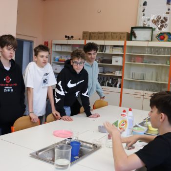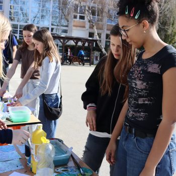 Takto sme si opäť pripomenuli, aká dôležitá je voda v našom živote. Na dvore si žiaci mohli užiť zábavné aktivity. Na stanovištiach sa súťažilo aj tvorilo. V laboratóriu žiaci pozorovali výnimočné vlastnosti vody a aj sami mohli vyskúšať zaujímavé pokusy s vodou. Vo vestibule bolo možné ochutnať rôzne typy vôd a dozvedieť sa o význame konkrétnych minerálov pre organizmus. Veľké ďakujem patrí žiakom 7. E, 8. R a N, ktorí si aktivity pripravili a celý deň samostatne viedli aj chod jednotlivých stanovíšť.