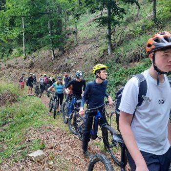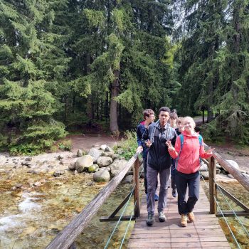 Letný turistický kurz si v Nízkych Tatrách užili triedy Pets a Hikers. Je to športová aktivita, ktorú každoročne organizuje náš učiteľ Daniel Pollák. Cieľom kurzu je zlepšiť fyzickú zdatnosť a naučiť žiakov vyjsť z ich komfortnej zóny a popasovať sa s počasím, s obavami z terénu, a tiež upevniť ich vzťah k outdoorovým aktivitám. Tento rok spoločne splavili Hron, vychutnali si 35 km dlhú cyklojazdu na e-bikoch a užili si bazény v hoteli Permon. Kurz žiakom opätovne poskytol nezabudnuteľné zážitky a spomienky.