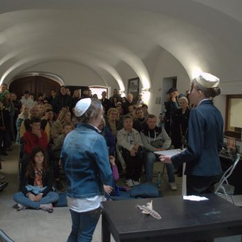 V sobotu 13. mája sa SNM – Múzeum židovskej kultúry zapojilo do v poradí už 19. ročníka Noci múzeí a galérií – obľúbenej celoeurópskej iniciatívy. Každoročne sa múzeum snaží pre svojich návštevníkov pripraviť jedinečný a zaujímavý program, ktorý by ich nielen obohatil o nové zaujímavé poznatky o židovskej kultúre, ale vďaka ktorému by zároveň odchádzali s pocitom príjemného kultúrneho zážitku. Zámer židovského múzea sa tohtoročnú druhú májovú sobotu podarilo splniť najmä vďaka výnimočnému programu – divadelnému vystúpeniu žiakov 1. súkromného gymnázia v Bratislave, ktorým slávnostne otvorili toto podujatie. Divadelná inscenácia Tajuplné stretnutie s rabínom je úžasný projekt so zámerom o interdisciplinárne prepojenie rôznych predmetov – dejepisu, prírodovedy, matematiky či geografie. To všetko v podaní šikovných, talentovaných žiakov, ktorých vystúpenie bolo na takej úrovni, až diváci na chvíľu zabudli, že sa v skutočnosti nenachádzali na divadelných doskách, ale na nádvorí Múzea židovskej kultúry. Poďakovanie patrí nielen všetkým zapojeným žiakom z prímy Negotiators, ale aj pedagógom Anne Cifrovej a Michalovi Fedičovi, vďaka ktorých odbornému vedeniu a priateľským radám sa všetkým zúčastneným podarilo vytvoriť niečo skutočne výnimočné.