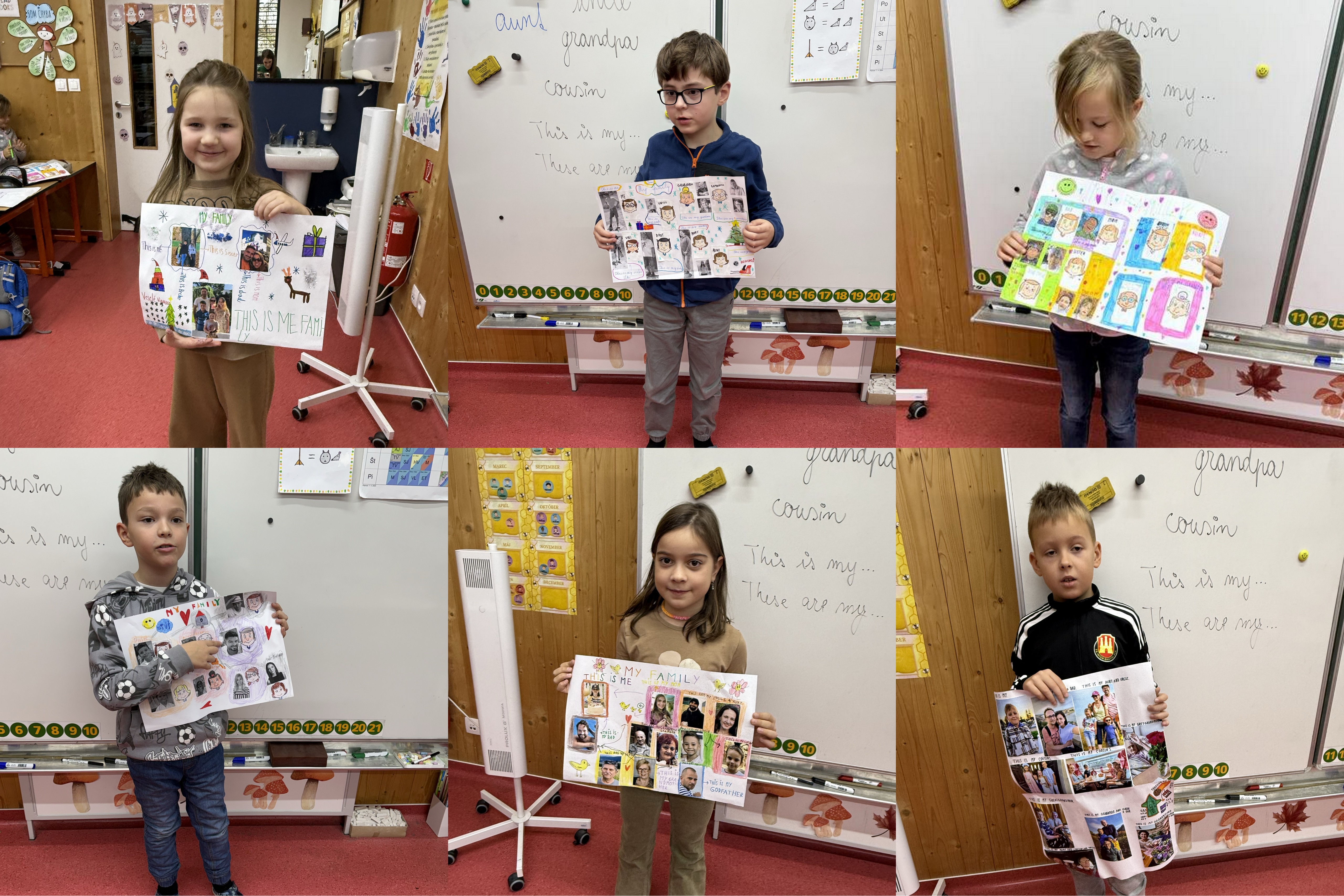 Projekty Moja Rodina v 2. ročníku ZŠ: Počas hodín anglického jazyka sa naši žiaci učili rozprávať o svojej rodine, pomenovať jednotlivých členov rodiny a vyjadriť ich pocity. Výstupom hodín bola príprava plagátu o rodine, ktorý neskôr prezentovali svojim spolužiakom a triednej učiteľke. Vznikli tak krásne plagáty s rôznou tematikou, pri ktorej deti nešetrili na fantázii.