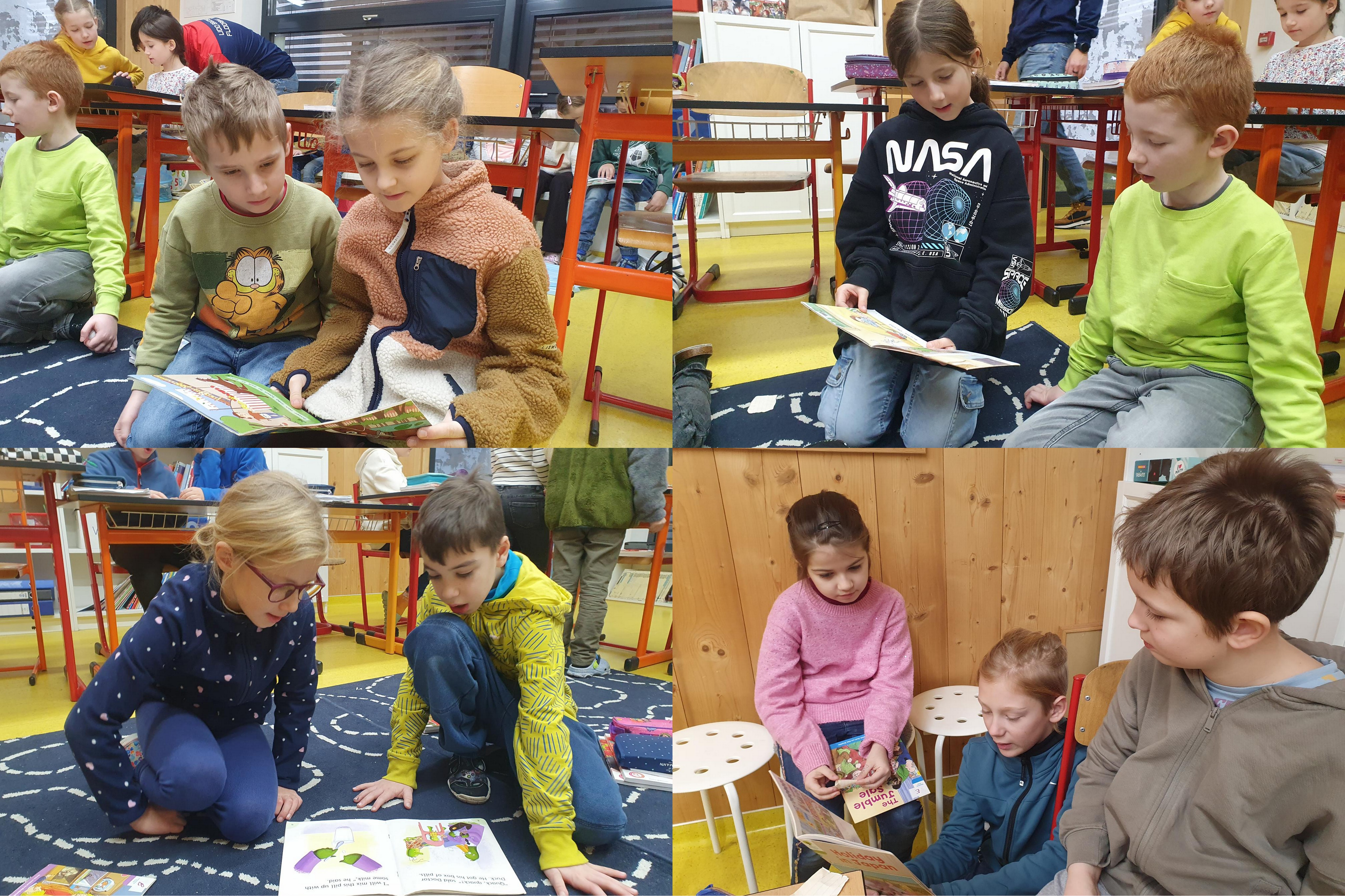 PEER EDUCATION: Vyučovanie anglického jazyka na 1. stupni ZŠ možno ozvláštniť spoločným čítaním. Druhákov navštívili tretiaci, ktorí pomáhali svojim mladším spolužiakom zoznámiť sa s anglickými knižkami. Spolu čítali, prekladali vety a následne sa o prečítaných knihách rozprávali. Cieľom takýchto hodín je nielen rozvíjať vzťah k čítaniu v cudzom jazyku, ale aj vzájomne sa spoznávať.