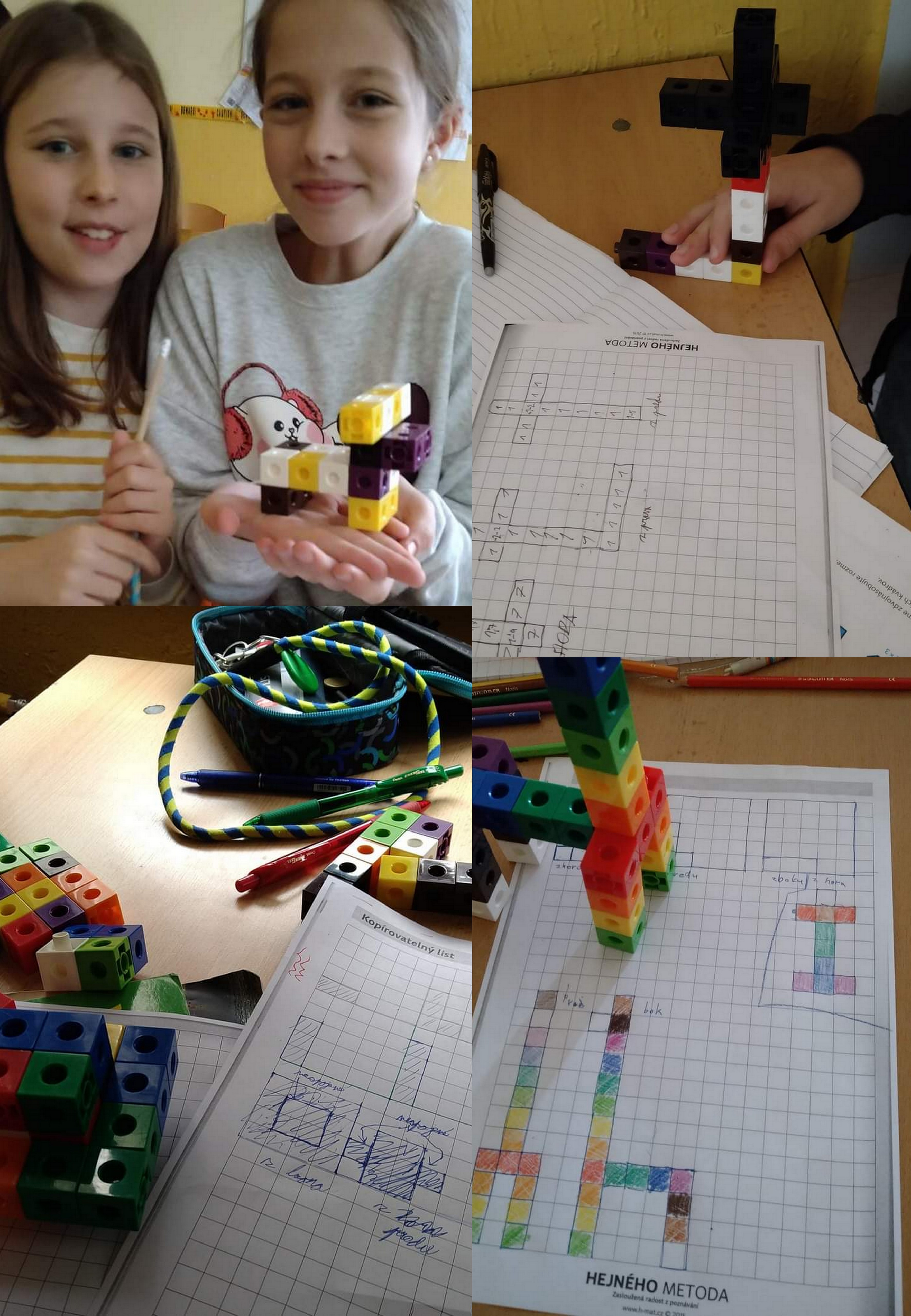 Telesá z kociek: V šiestom ročníku si žiaci precvičujú svoju priestorovú predstavivosť a geometrické nákresy pomocou stavieb telies podľa ich nákresu spredu, zboku a zhora. Neskôr postavia ľubovolné vlastné teleso (kváder či kocku) a následne zakreslia tieto tri pohľady na dané teleso. Žiaci 6. ročníka po zvládnutí tohto základu na hodine matematiky pridali svoju tvorivosť a okrem klasických telies začali stavať a zakresľovať aj svoje vlastné stavby v tvare zvieratiek, dopravných prostriedkov a zaujímavých budov. Vyučovanie sa tak stáva pútavým aj zábavným zároveň.