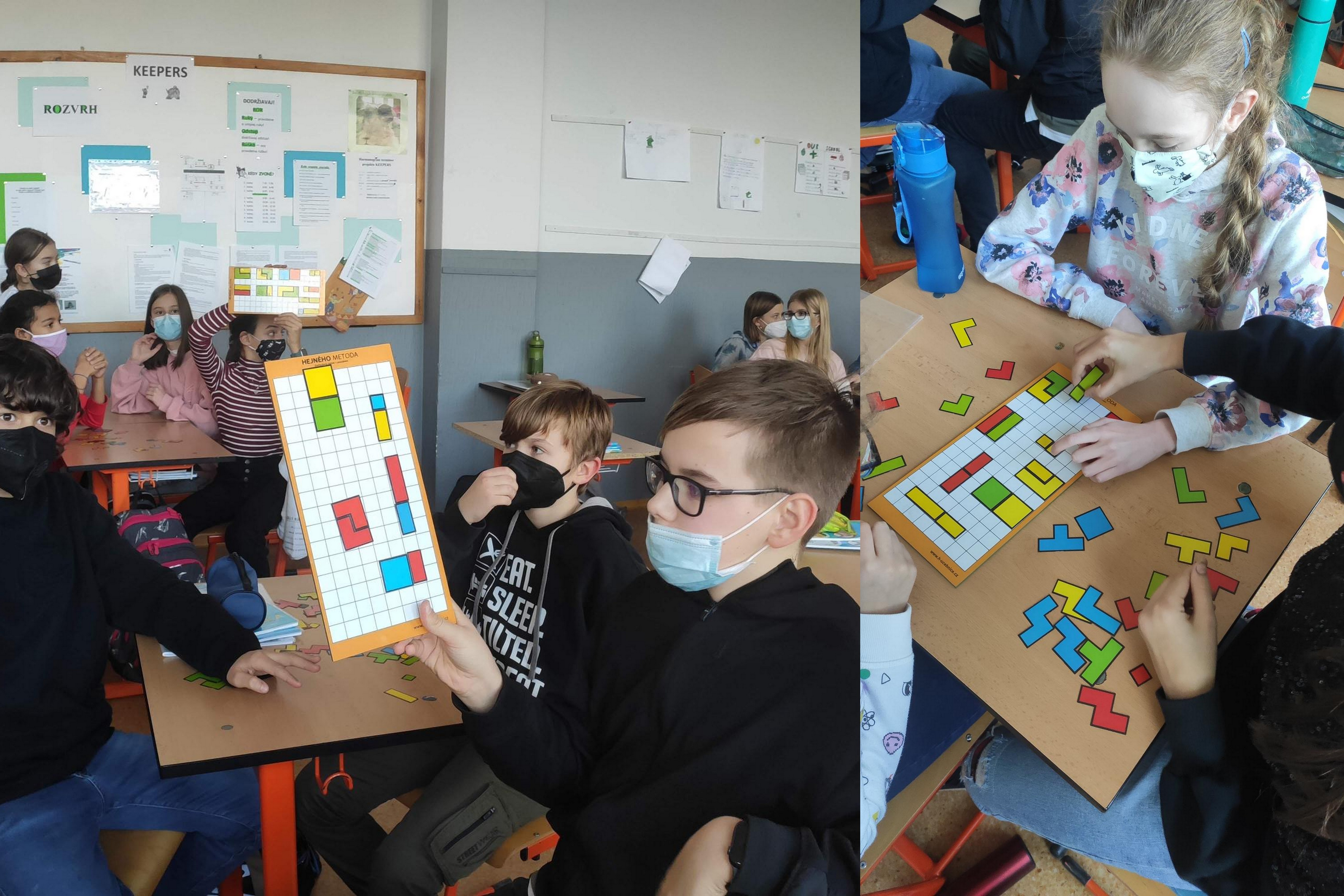 Parkety: Matematika v príme sa učí aj názorne. 2D priestory si žiaci precvičovali vkladaním magnetických dlaždíc do určeného priestoru. Hľadaním viacerých možností a kombinácií si zdokonaľovali svoje matematické zručnosti.